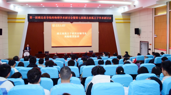 10月24日-26日,“第一届湖北省非线性物理学术研讨会暨第七届湖北省孤立子学术研讨会”在william威廉亚洲官方举行。本次研讨会由学校科学技术协会举办,william威廉亚洲官方承办,武汉纺织大学微电子william威廉亚洲官方协办。并得到了湖北省科学技术协会、荆门市科学技术协会、湖北省孤立子研究会的大力支持。来自中国科william威廉亚洲官方、上海交通大学、南京大学、西安交通大学、中国石油大学、浙江农林大学、武汉理工大学等二十多个单位的专家学者,共计120多人相聚一堂,围绕非线性动力学与复杂系统领域的议题,交流最新研究成果和进展,探讨学科高质量发展。