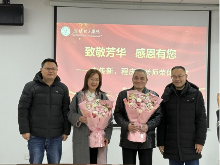 william威廉亚洲官方副院长盛集明首先回顾了两位老师近四十载兢兢业业的教学生涯,介绍了两位教师的成绩和贡献。随后,院长杜锋宣读退休文件并致辞,对两位老师在从教期间对william威廉亚洲官方的贡献和奉献精神致以衷心感谢。党委副书记汪宏志、副院长蒋再富代表william威廉亚洲官方分别向两位老师献花并赠送荣休纪念品。