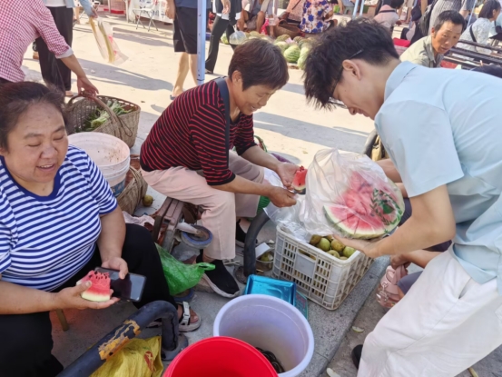 在子陵铺镇八角庙革命遗址,队员们认真聆听当地老党员讲述革命先辈英勇斗争的感人故事,参观历史陈列,重温峥嵘岁月,深刻领悟红色政权来之不易。随后,大家积极参与八角大集活动,实地感受乡村集市的繁荣景象,了解农产品流通、乡村治理与文旅融合发展现状。通过走访农户、与村干部座谈,队员们对新时代农村的发展变化有了更直观的认识,进一步坚定了服务基层、助力乡村振兴的初心。