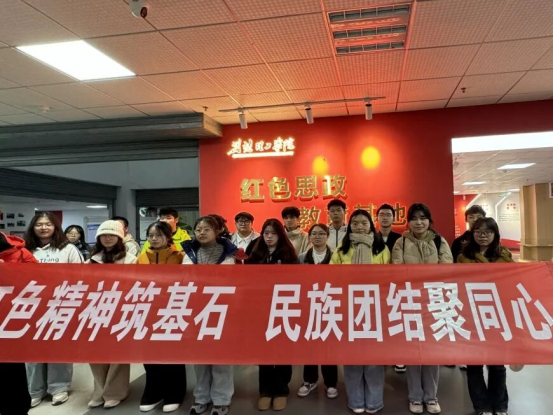 活动现场,红色展览馆内一幅幅定格历史瞬间的珍贵照片、一段段记录奋斗历程的详实文字资料,吸引同学们驻足凝视、轻声交流。大家循着历史脉络,重温革命先辈团结各族人民攻坚克难的峥嵘岁月,深刻体会到红色精神既是中华民族的宝贵历史财富,更是凝聚各民族人心、激励后辈团结奋斗的精神纽带。岳耀闯边走边向同学们分享红色故事,他表示,组织此次参观学习,就是希望大家从厚重历史中汲取奋进力量,将红色基因融入青春血脉,以实际行动践行民族团结,凝聚起同心共筑中国梦的青春合力。